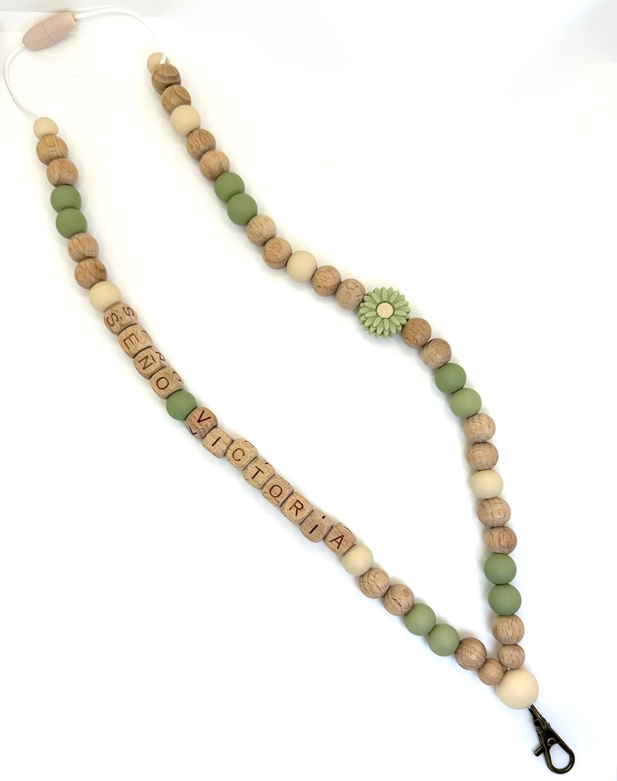 Lanyard de silicona y madera personalizado con nombre