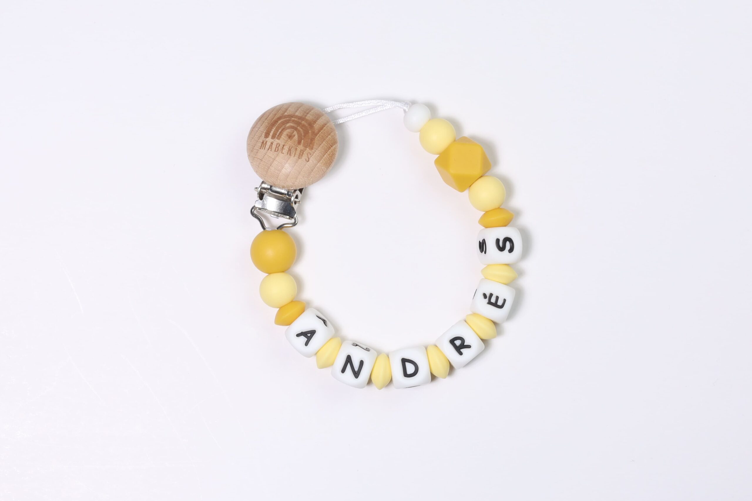 Chupetero Nombre Personalizado silicona Yellow Hexagon