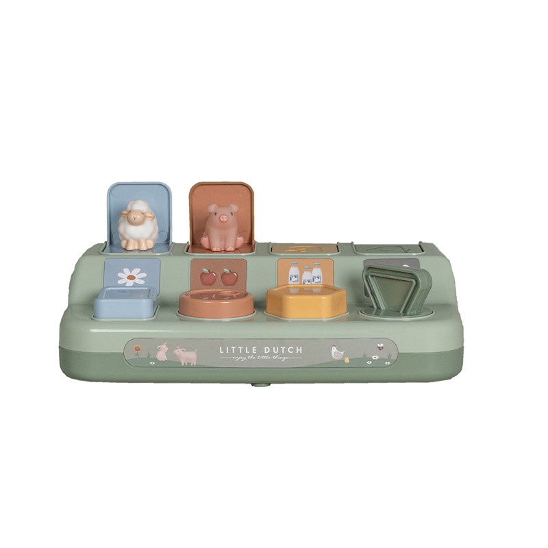 Este juguete de la reconocida marca Little Dutch está diseñado para ofrecer una experiencia única a los niños a partir de los 12 meses. A través de una serie de botones que deben presionar o girar, los niños descubrirán un nuevo animalito de la colección Pequeña Granja de Little Dutch en cada interacción. Con un simple TADAA, un animal adorable y colorido aparece, lo que mantiene a los pequeños entretenidos y curiosos, promoviendo su desarrollo cognitivo y sensorial.