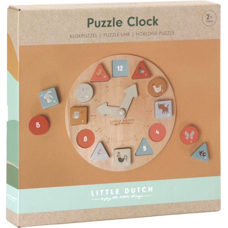 Este puzle de reloj Little Dutch también es ideal para aprender colores, números y formas. Aprenderán a contar y reconocer los números y colores haciendo coincidir la forma, los colores y el número correctos con la ranura correcta.