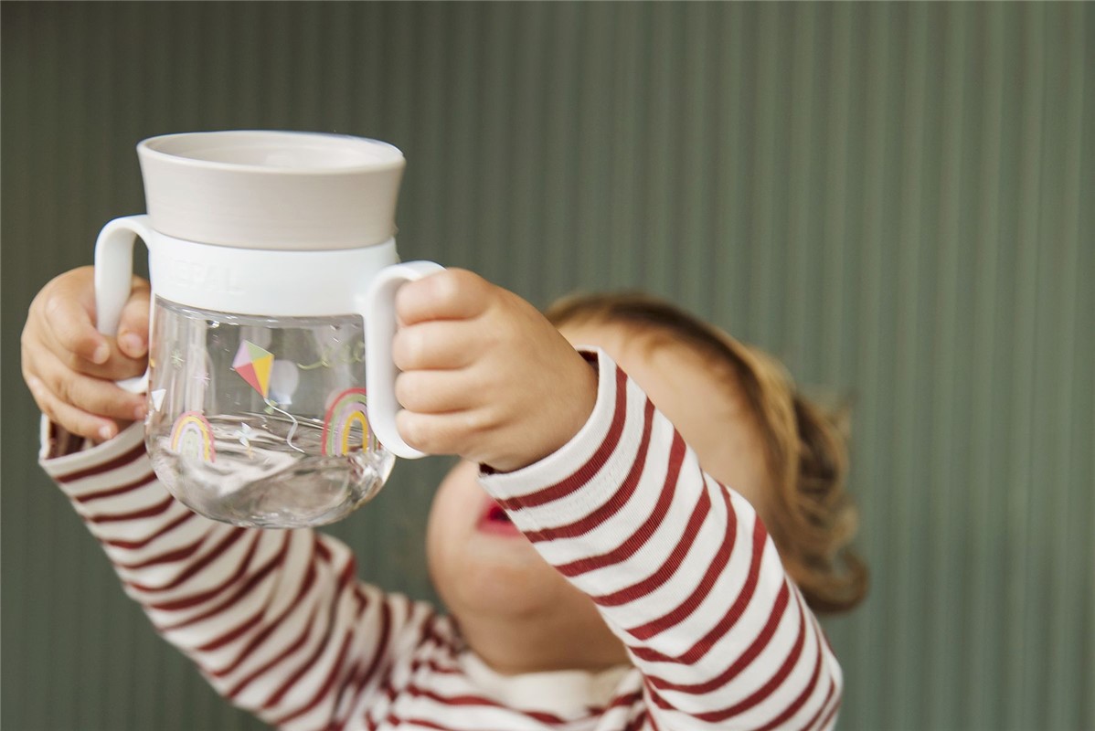 El vaso 360º Mepal infantil facilita el aprendizaje de beber solos.